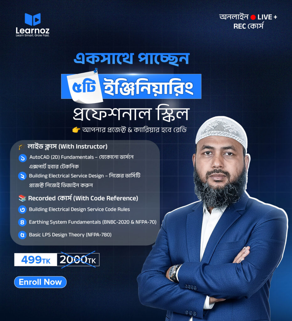 BNBC-2020 & NFPA-70 Code অনুযায়ী আর্থিং সিস্টেম ফান্ডামেন্টালস শিখবেন।