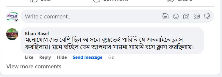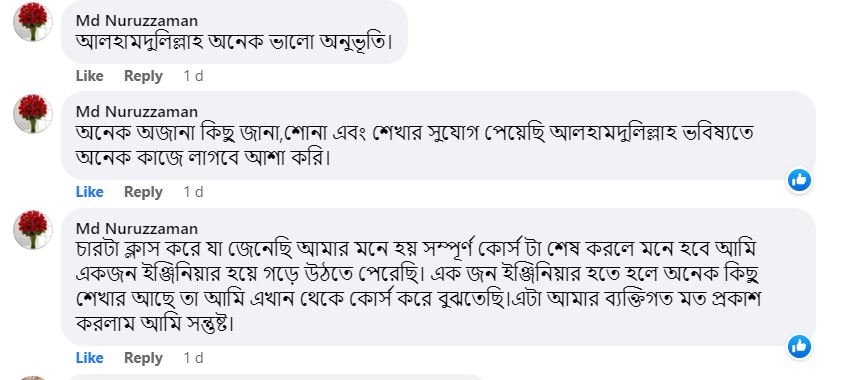 জি, ক্লাশ পরবর্তী সময়ে সাপোর্ট টীম থেকে সাপোর্ট নিতে পারবেন। কোর্স শেষে প্রয়োজনে উত্তরার অফিসে এসে সরাসরি প্রবলেমগুলো সলভ করে নিতে পারবেন।