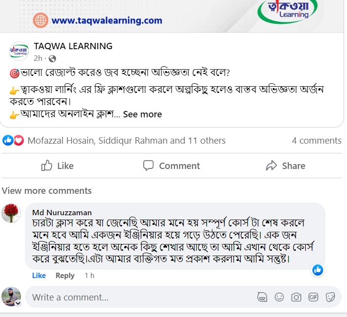 অনলাইন কোর্স হলেও সরাসরি অফিসে এসে প্রবলেম সলভ করে নেওয়ার সুযোগ।