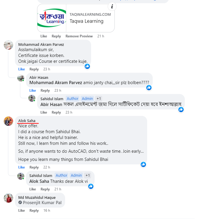 এসাইনমেন্ট জমা প্রদাণ ও এপ্রুভ হলে কোর্স শেষে সার্টিফিকেট দেওয়া হবে।